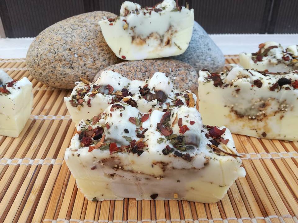 Sabonetes, esfoliantes, escalda pés, argilas e hidratantes feitos com manteigas e óleos naturais.