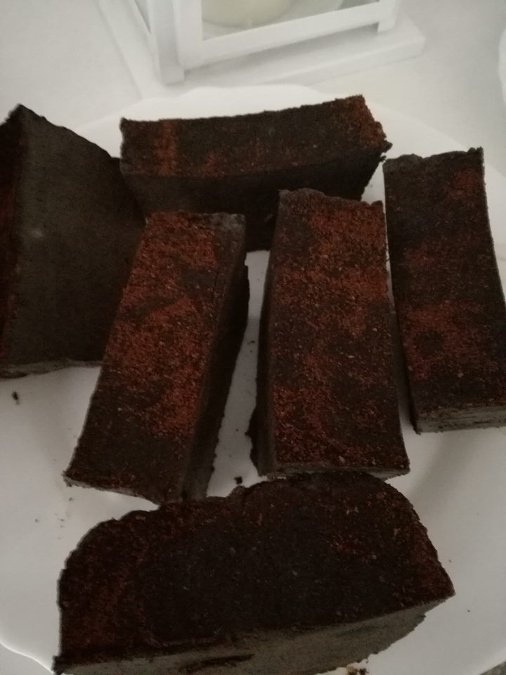 Base glicerinada, café em pó, canela, argila vermelha.